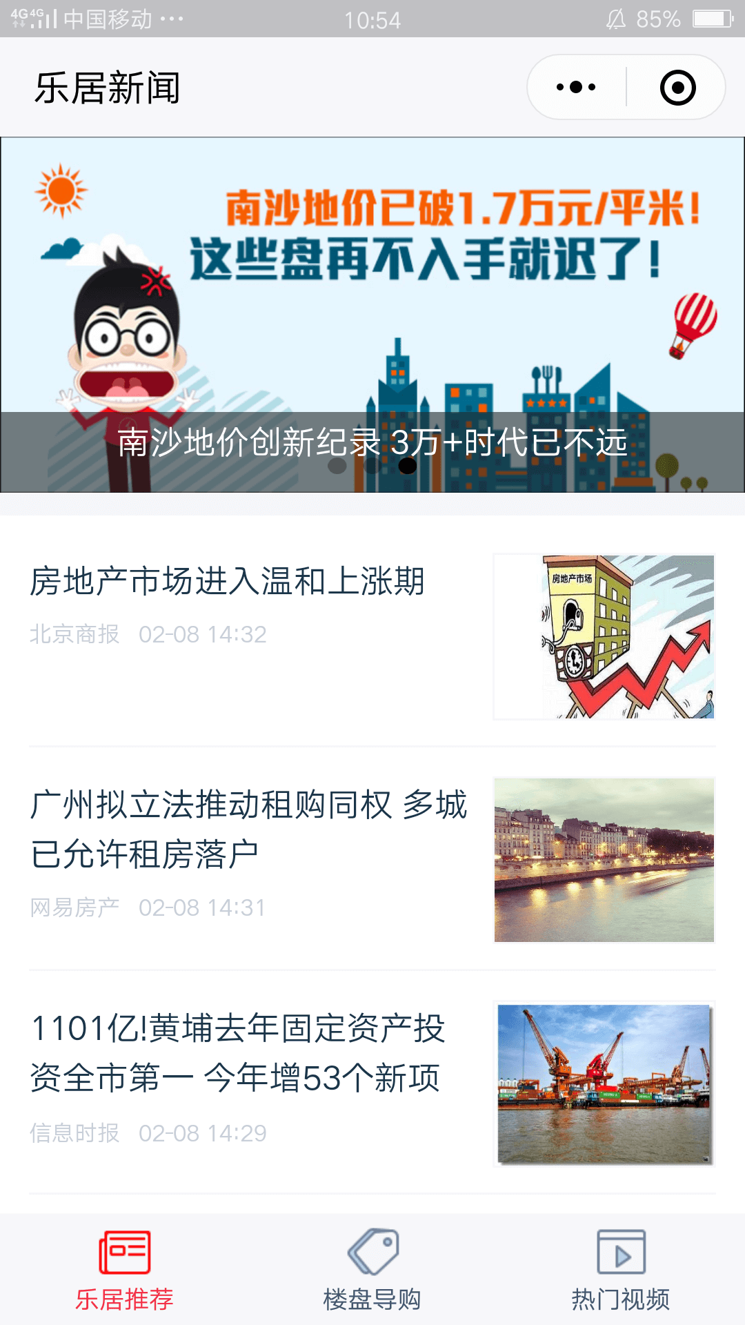 楼市报导小程序主要提供的是实时的楼市新闻资讯、热门视频以及楼盘导购攻略,将最新的楼市资讯内容推送到这个小程序平台中,让用户能够通过使用楼市报导小程序便捷地、针对性地获得楼市资讯。