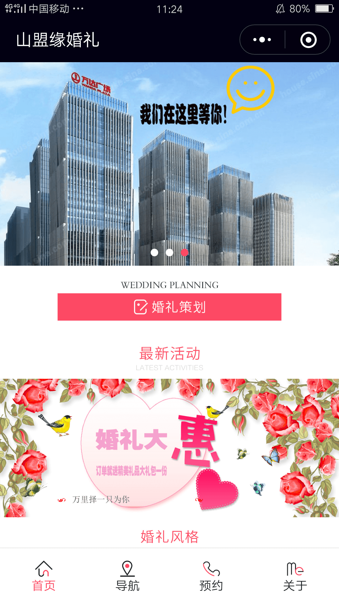 婚庆礼仪服务策划机构小程序目前能提供的服务是地图导航、资讯查看、客服拨号,通过相关功能的开发与使用,运营商利用这个平台推送、曝光商家的服务信息与优惠资讯,可以吸引部分线上的客户流量通过平台的客服功能转化成线下的消费流量。
